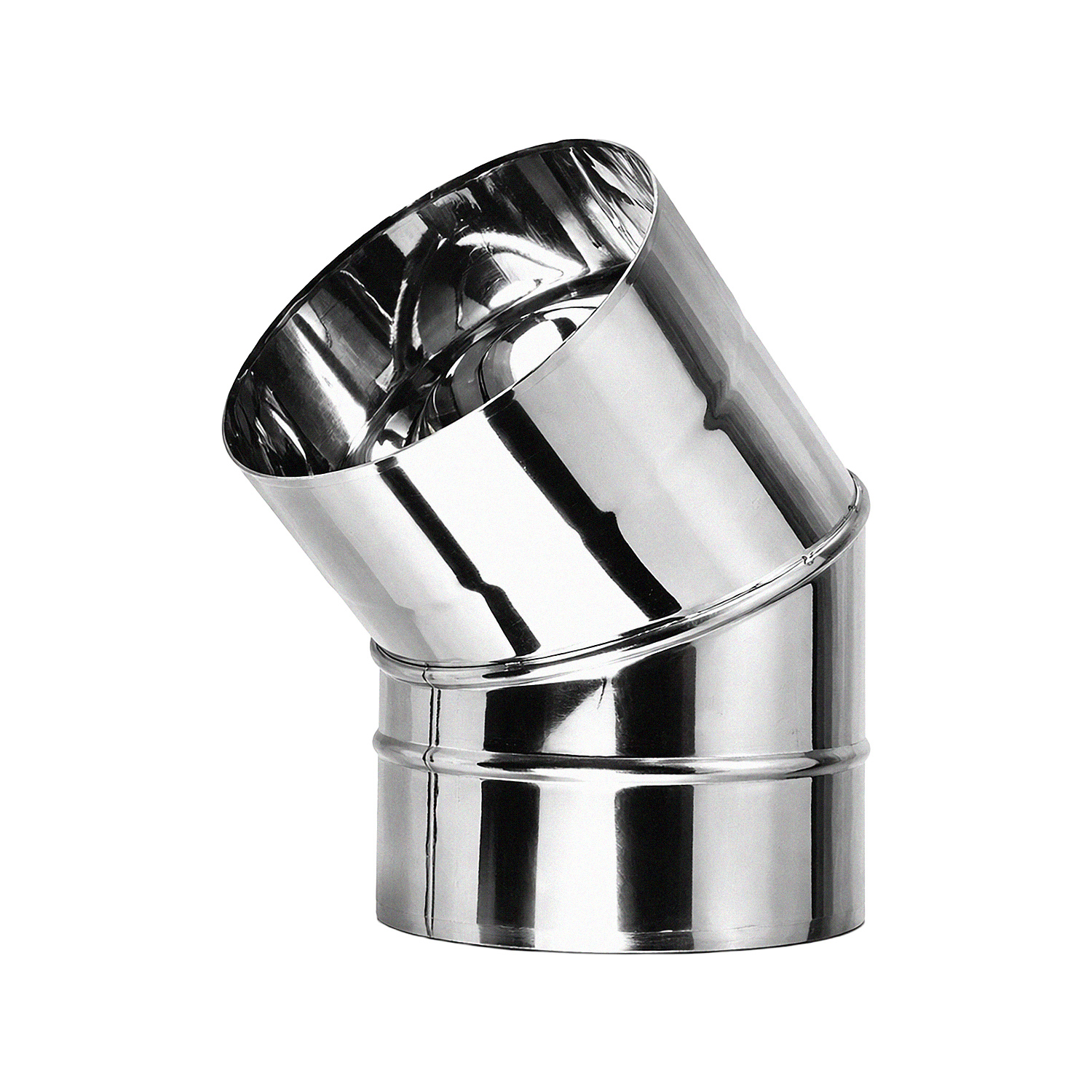 Curva soldada 45°, em inox, para chaminés com saídas de 115 mm.